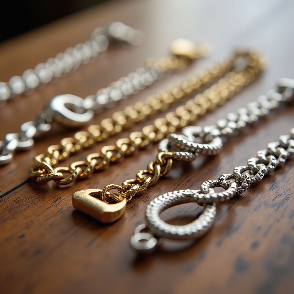 يجب أن تكمل السلسلة اللون واللمسة النهائية أو تعزز الجمال العام لتصميمك. التنوع مهم إذا كنت تصمم عدة قطع أو أنماط.