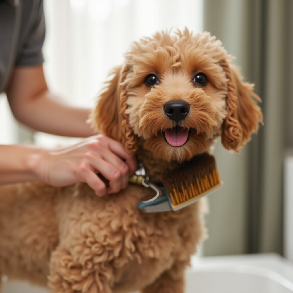 الكلاب ذات الشعر المجعد: عادةً ما يكون الجمع بين فرشاة ملساء ومشط الأفضل. يساعد ذلك في إبقاء الشعر مجعد خالي من الحطام ومحافظ عليه جيدًا.