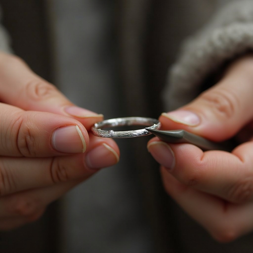 - التحقق من الملاءمة النهائية وتعديلات الراحة: تأكد من أن الخاتم يناسبك جيدًا ويشعر بالراحة. قم بإجراء أي تعديلات ضرورية، وتنعيم المناطق الخشنة باستخدام ملف.