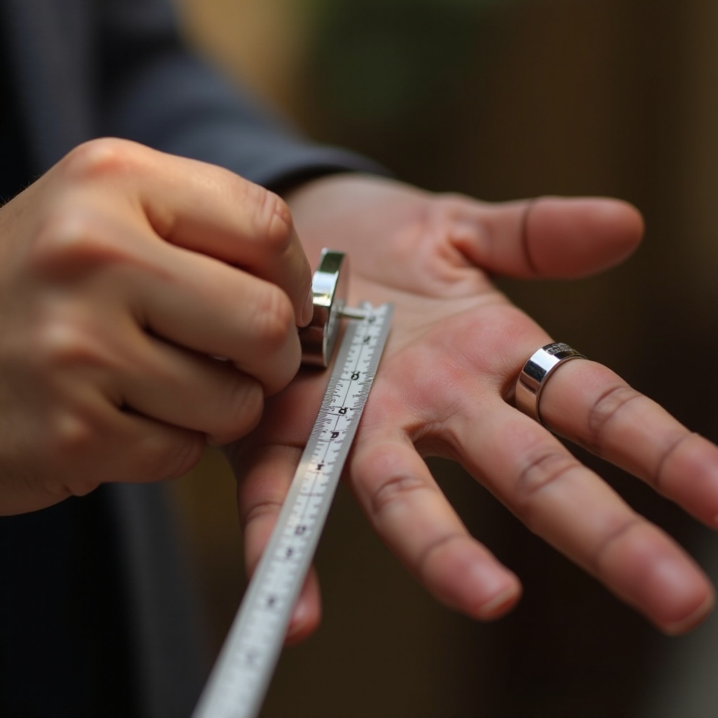 - Misurazione professionale: Visita un gioielliere per un rilevamento accurato della misura utilizzando strumenti specializzati, tenendo conto delle nocche e del comfort.